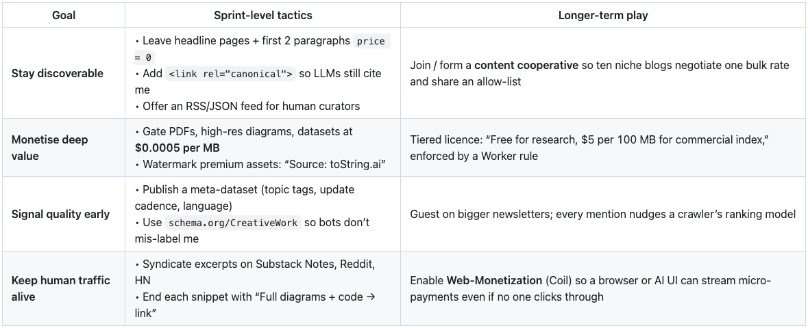Take-away: Pay-per-Crawl is a lever, not a panacea. Combine smart pricing with proactive syndication (Notes, RSS, newsletters) to stay visible in an AI-mediated web I’m expecting a lot of unintended consequences .
